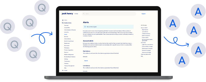Jack Henry’s Knowledge Base serves as a searchable hub for support teams to find feature documentation, technical how-to, and FAQs. It enables support teams to provide personalized assistance and efficiently handle complex issues, benefiting both customers and account holders.Ever-evolving documentation