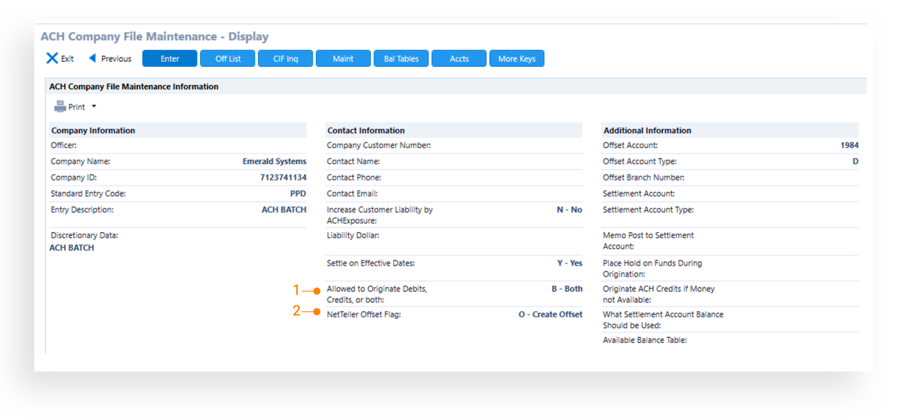 - Allowed to Originate Debits, Credits, or Both needs to be configured for either Credits only or Debits only