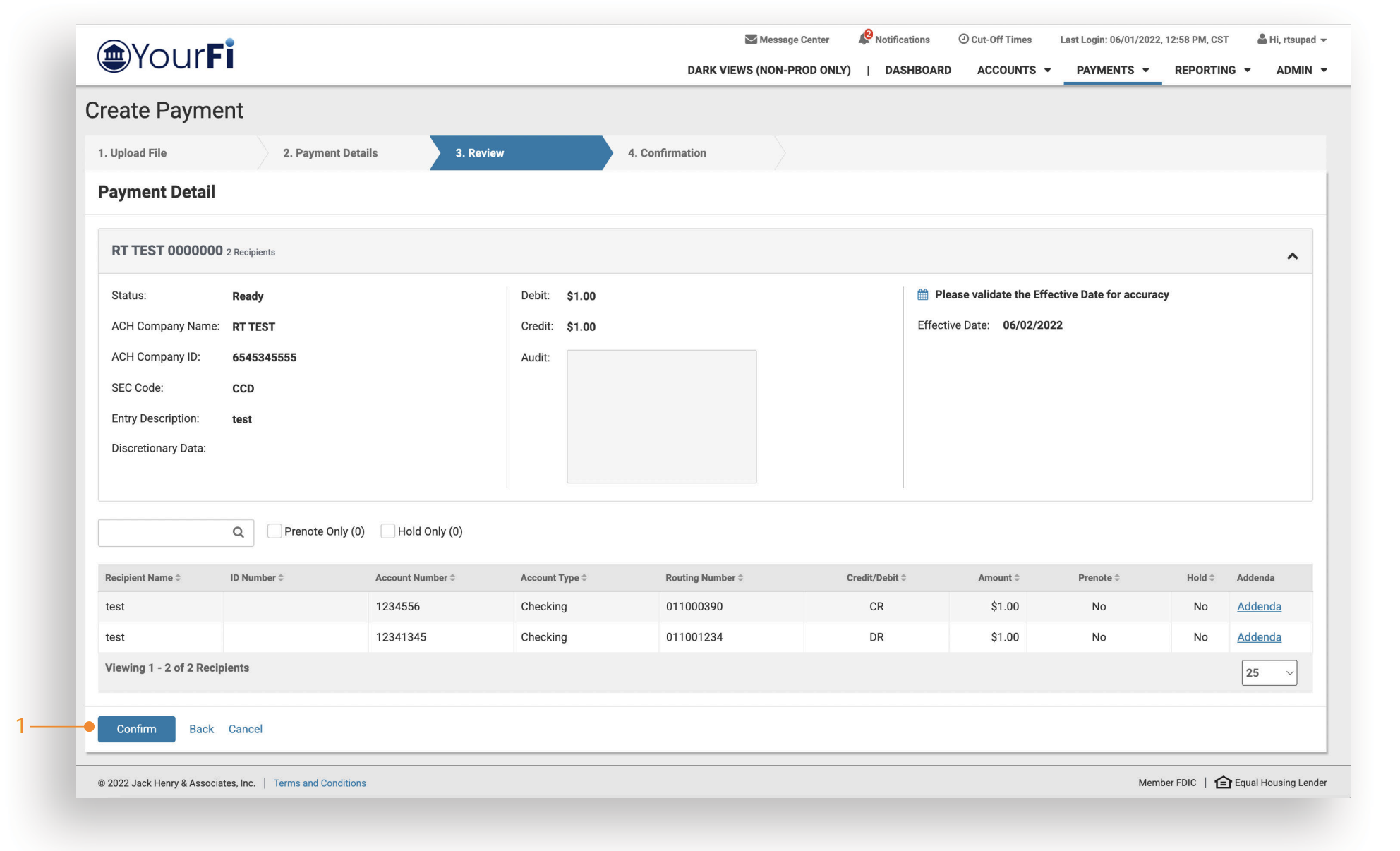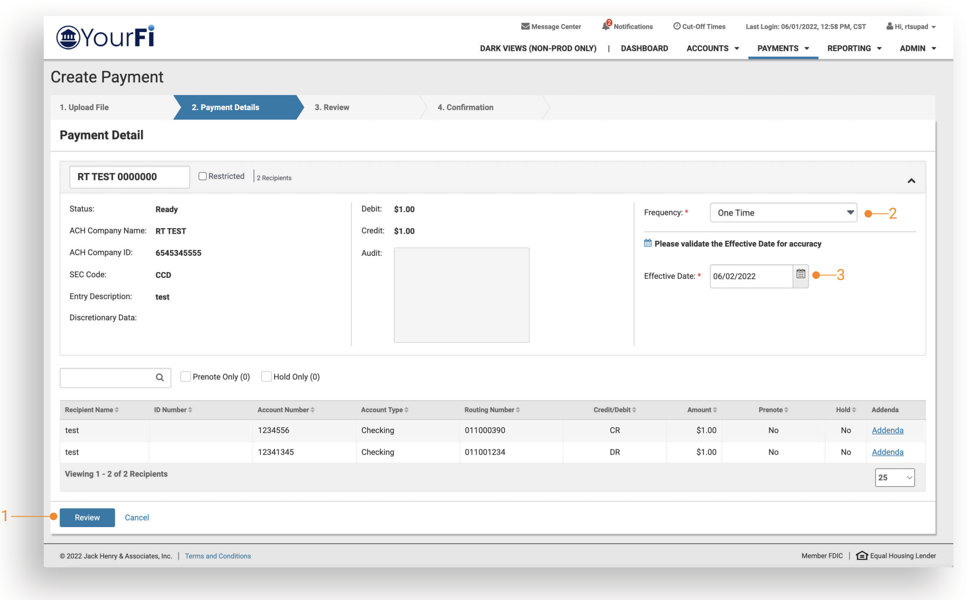 - The effective date must be validated to complete the Review screen within the Payment Detail.