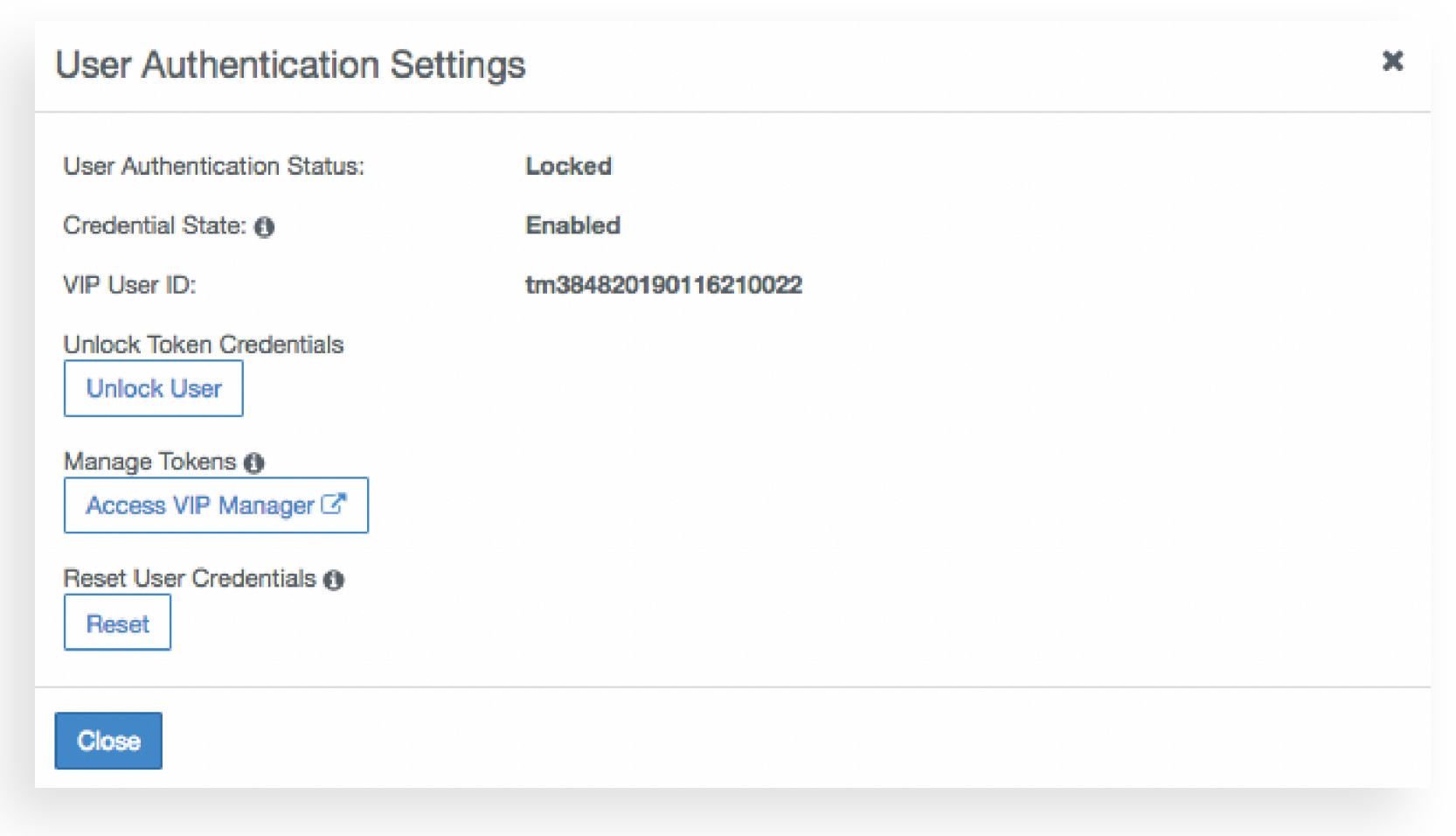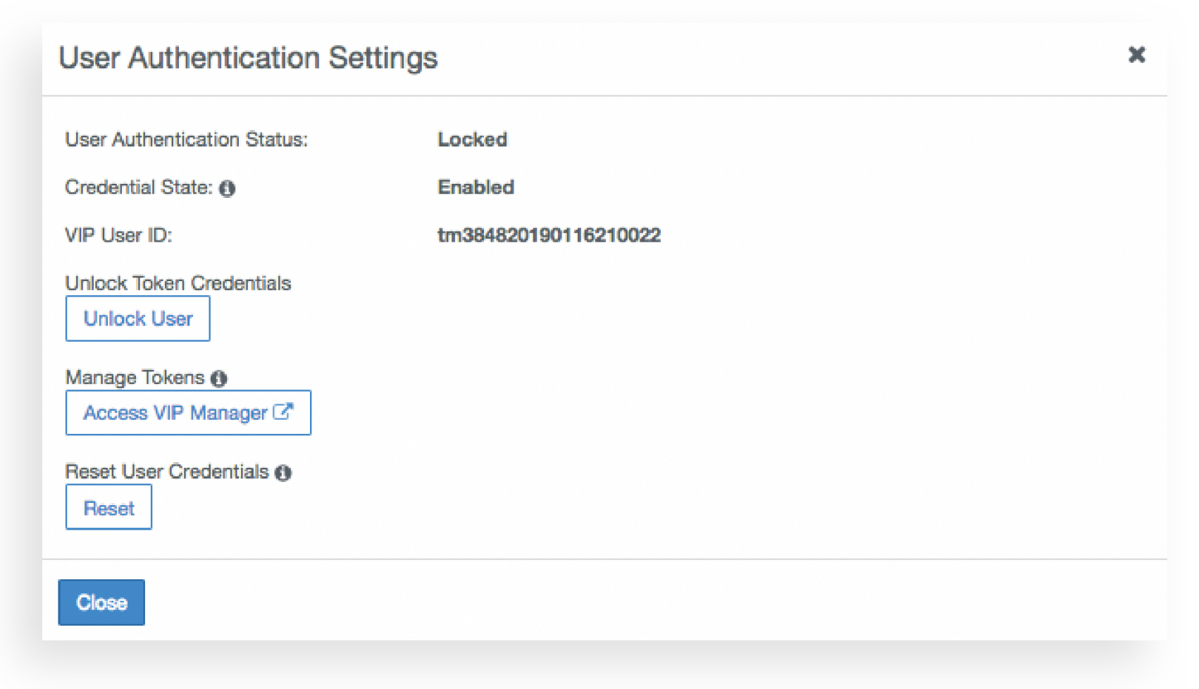 User Authentication Status: Indicates whether or not the user has registered a credential or if the user has been locked due to too many failed Secure Token authentication attempts.