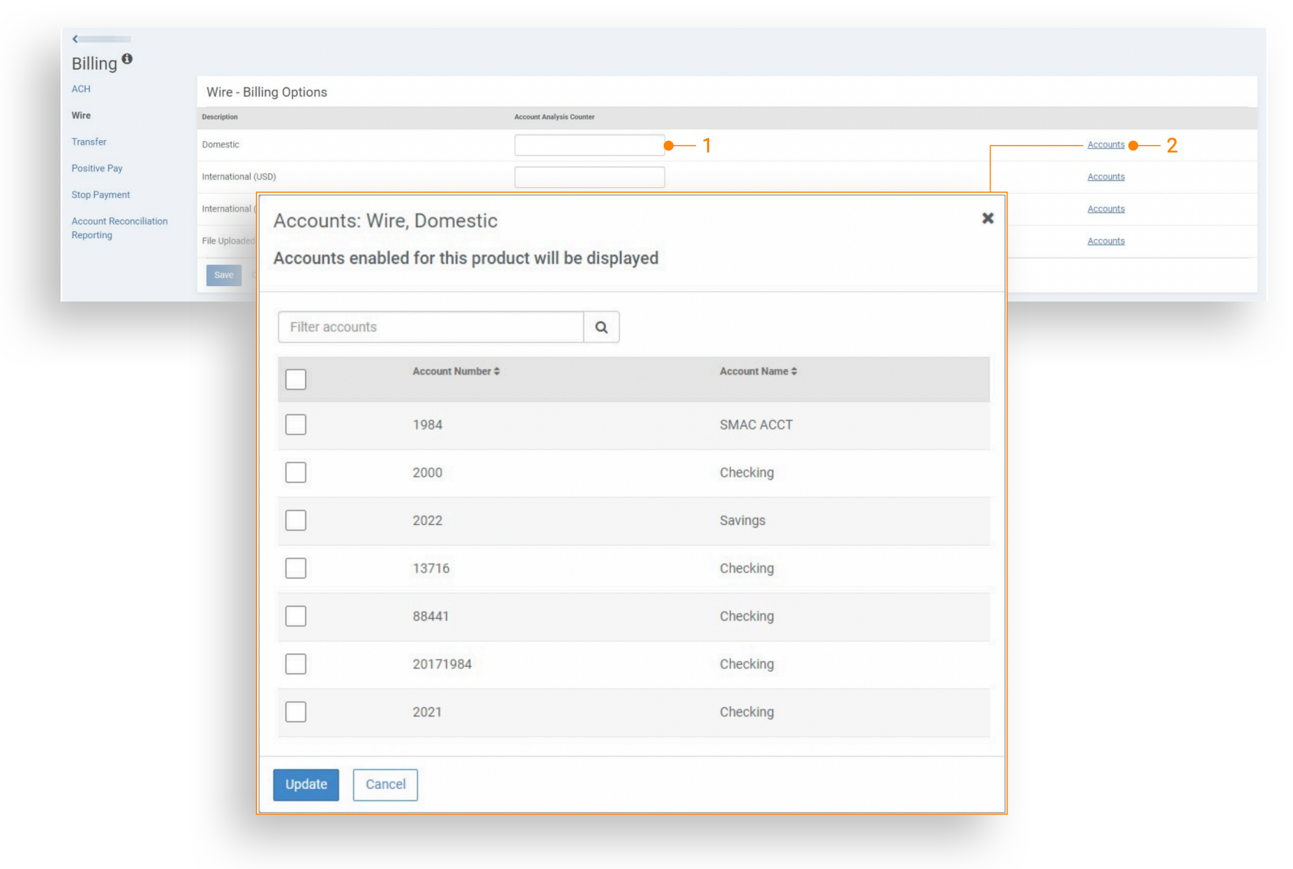 Billing Options – Wire, Transfer, Positive Pay, Stop Payment, Account Reconciliation Reporting