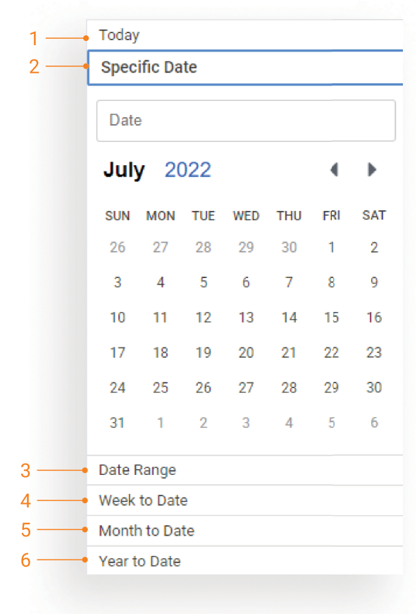 - Week to Date - Start Date begins with a Sunday date of the current week