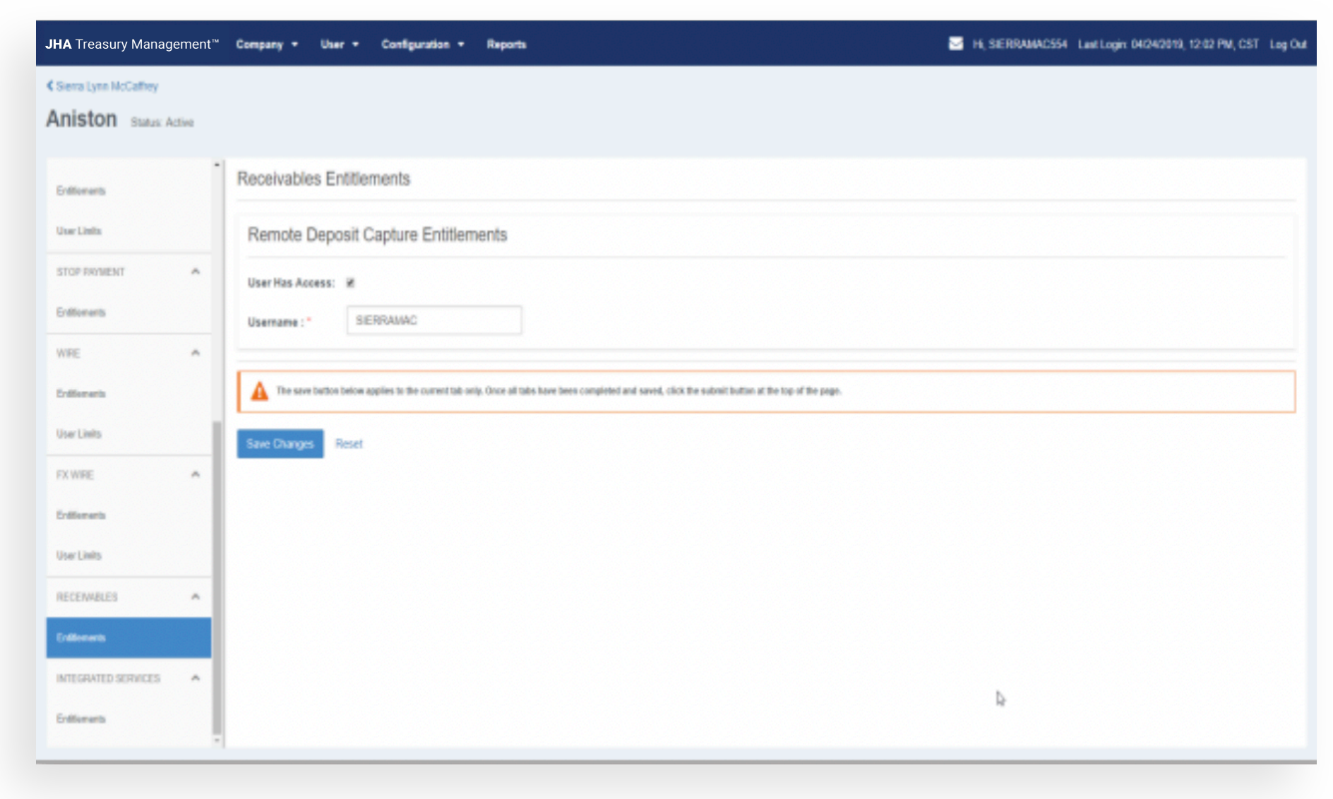 Note: To have this feature enabled, existing NetTeller RDC customers will need to log a support case with ProfitStars File Maintenance requesting that the Merchant be configured from the NetTeller RDC SSO to the Treasury Management RDC SSO. The following information will need to be included in the case notes: