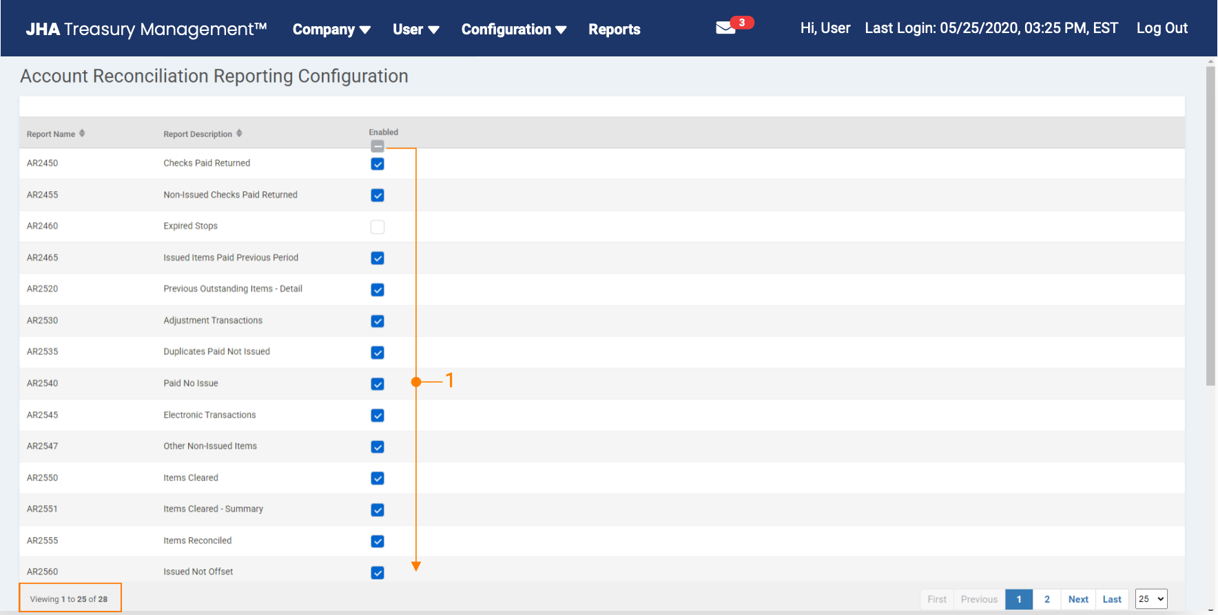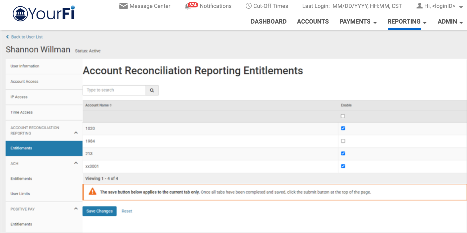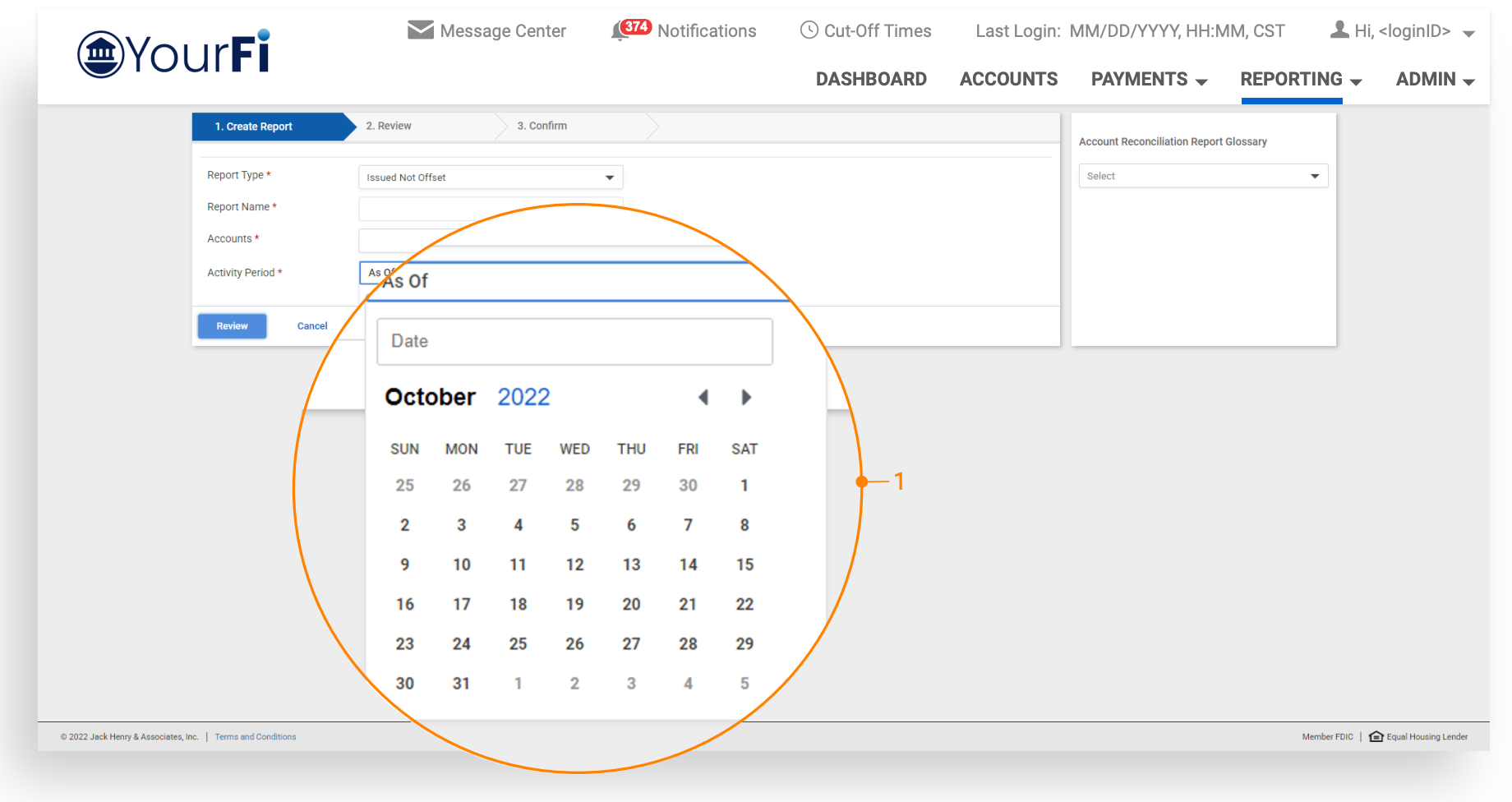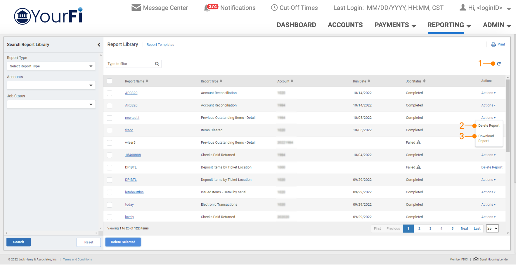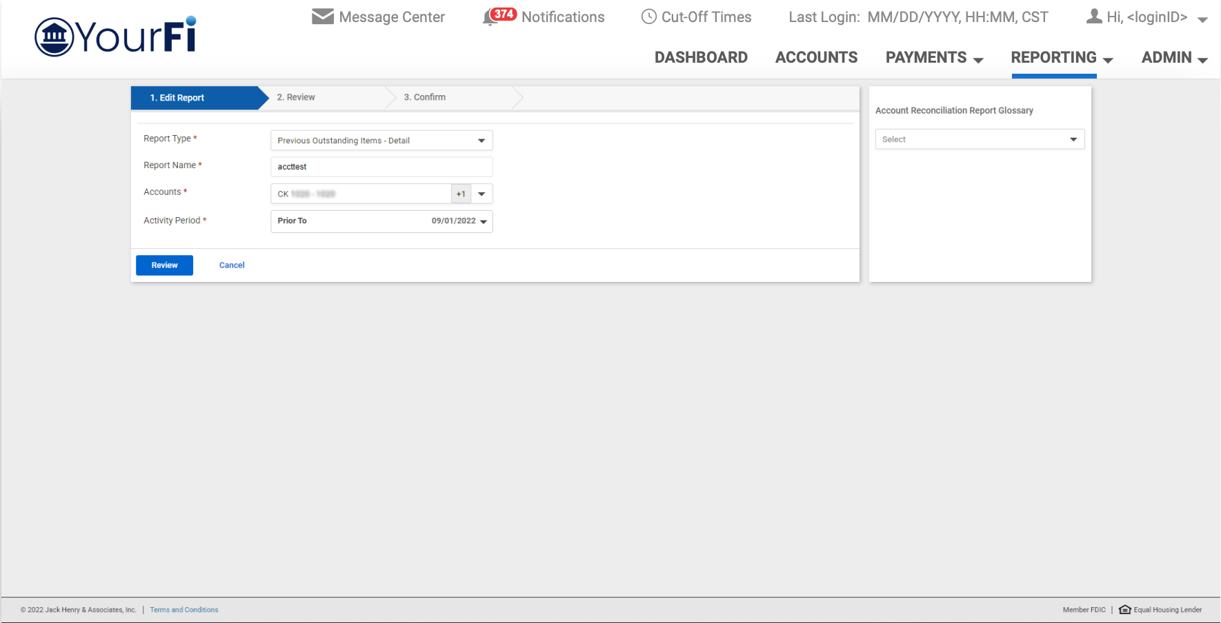 Product Feature: There are 28 separate account reconciliation reports available for financial institutions. Institutions determine which reports they want to make available to their customers.