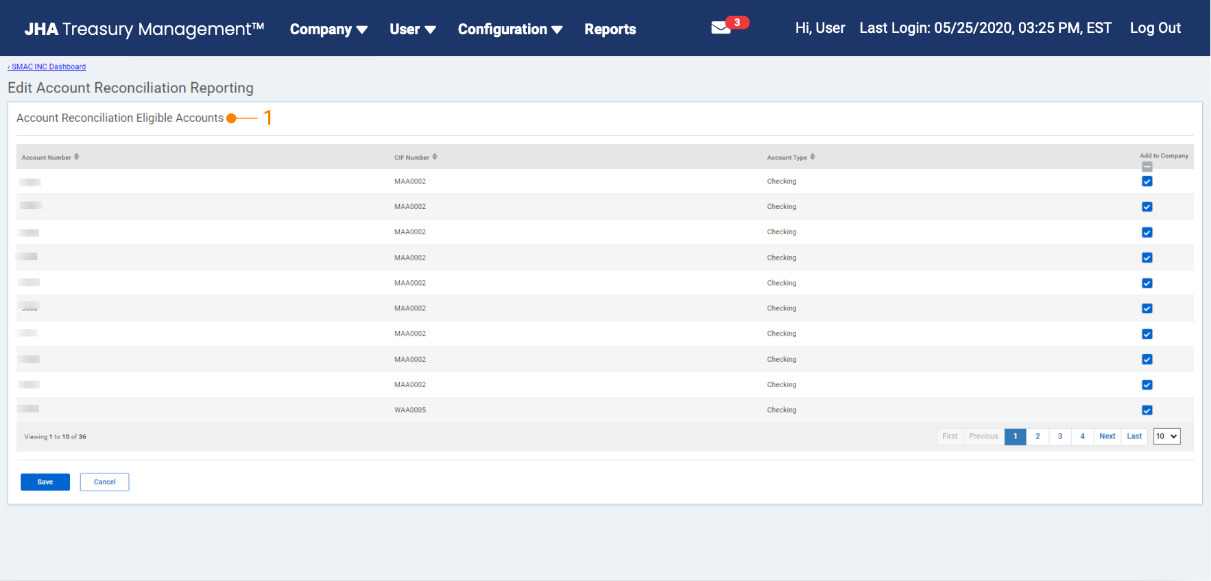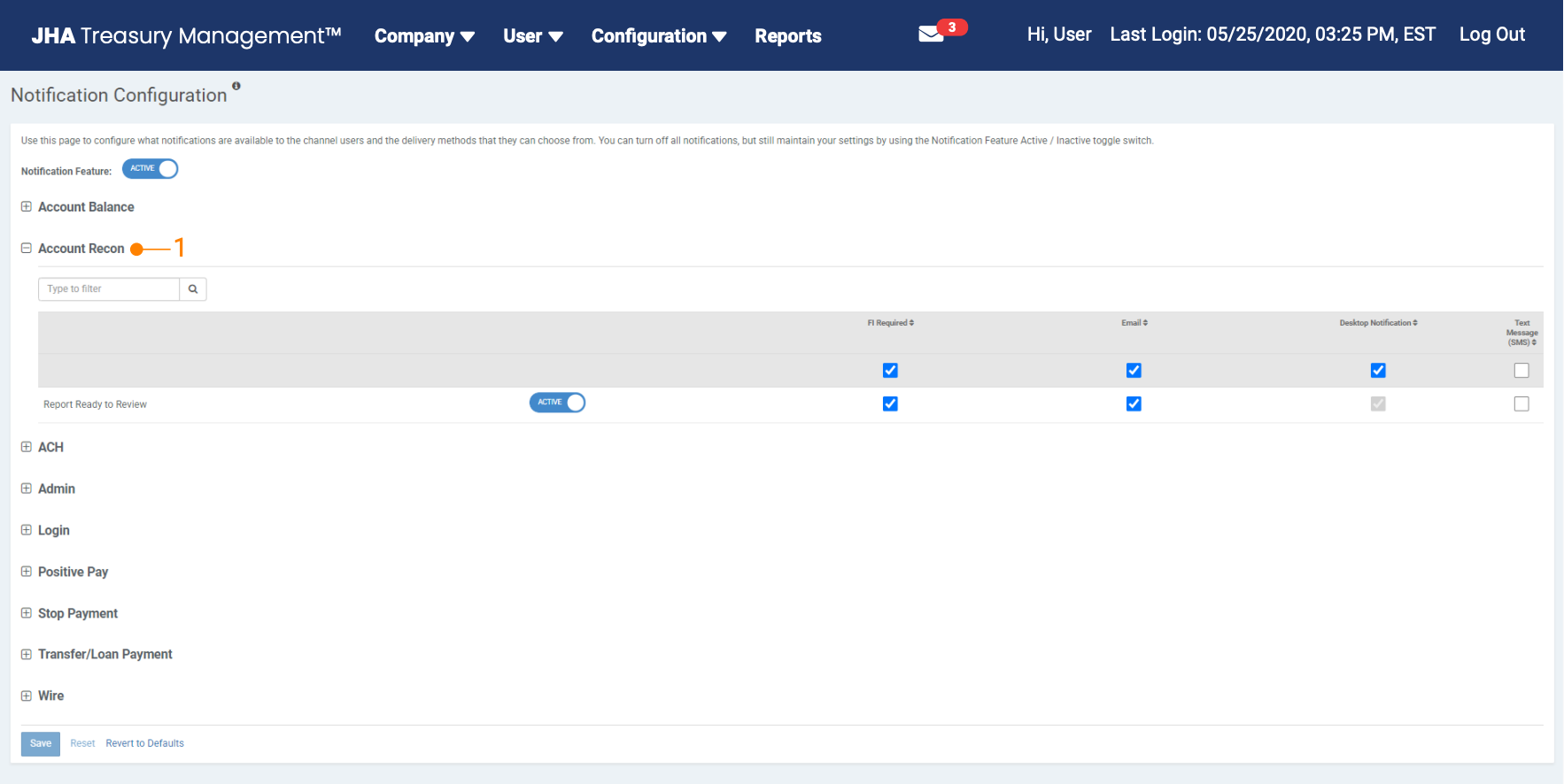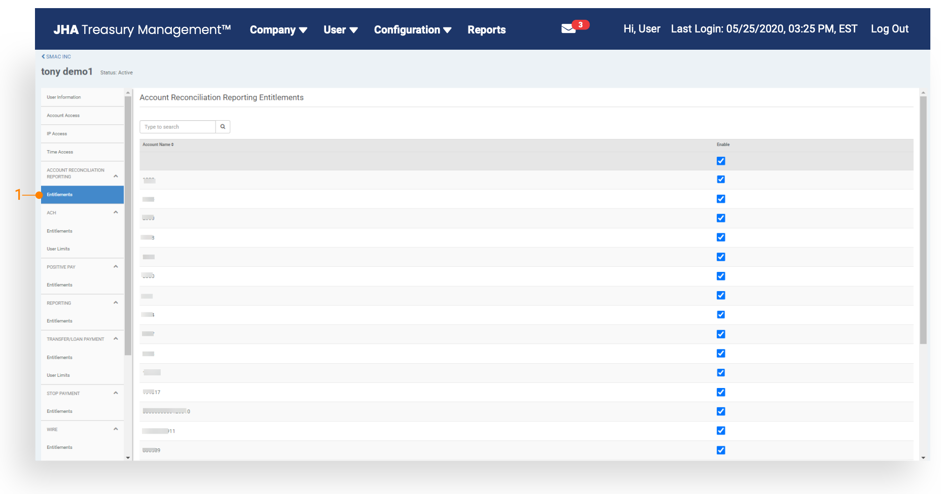 Account Reconciliation Eligible Accounts: Navigate to the company product feature configuration page and select Account Reconciliation Eligible Accounts.