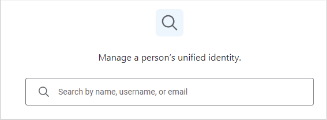People: If you are already logged in to People you can search in Identity for a user by name, username (digital ID), or email address. Treasury users will not appear in a search for People, but rather can be found by searching in the Identity section.