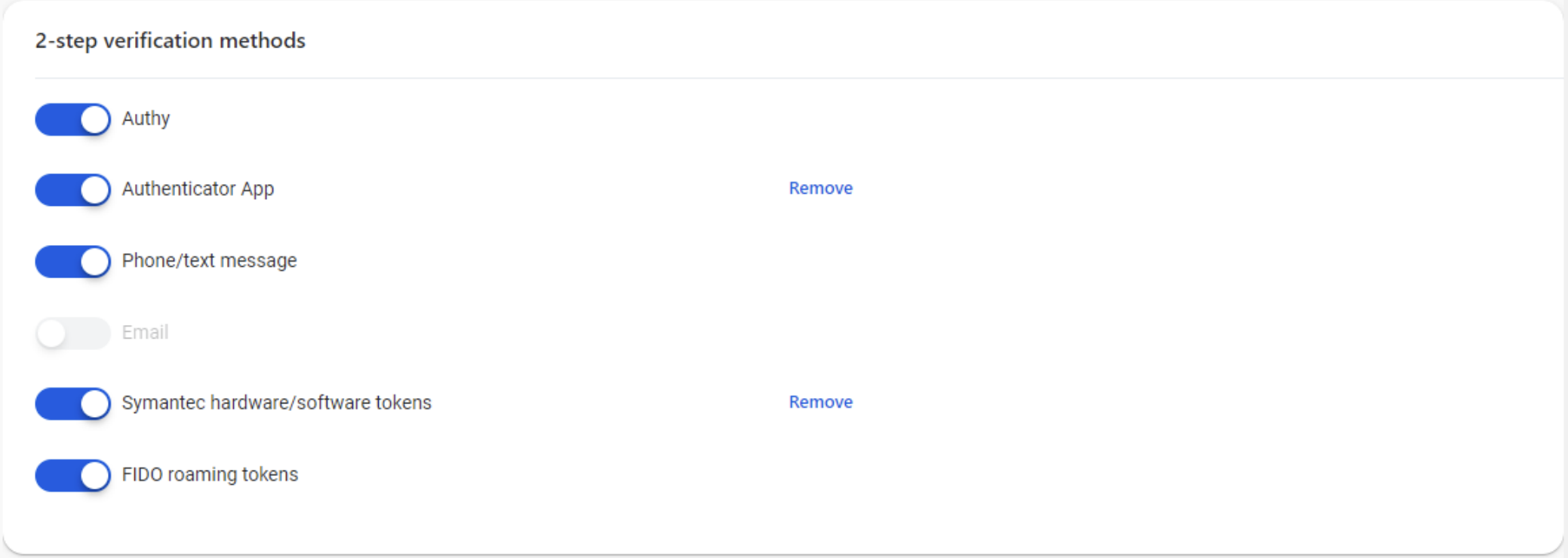 If a user has misplaced a token, gotten a new phone or phone number, etc., you can remove their existing 2FA methods. If all methods are removed, the user is prompted to select a new one at their next login.