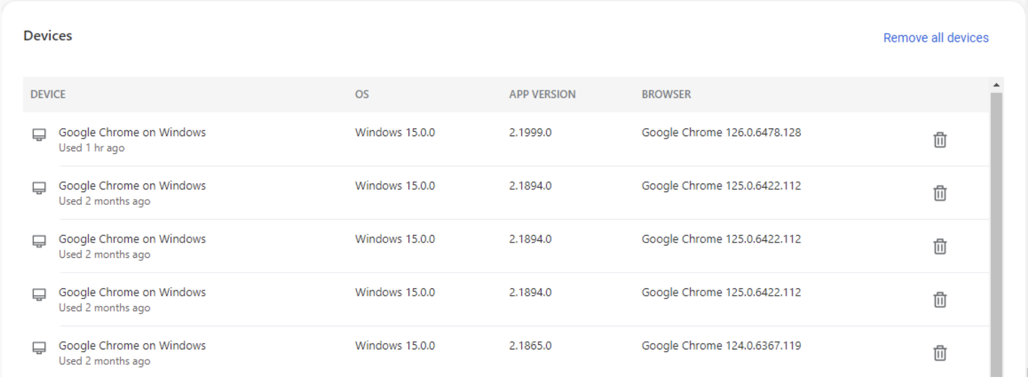 If a user has selected the ‘Don’t ask for codes again while using this browser’ option, removing the device from the Devices list will result in them being challenged with their selected 2FA method at next login.