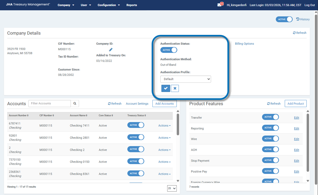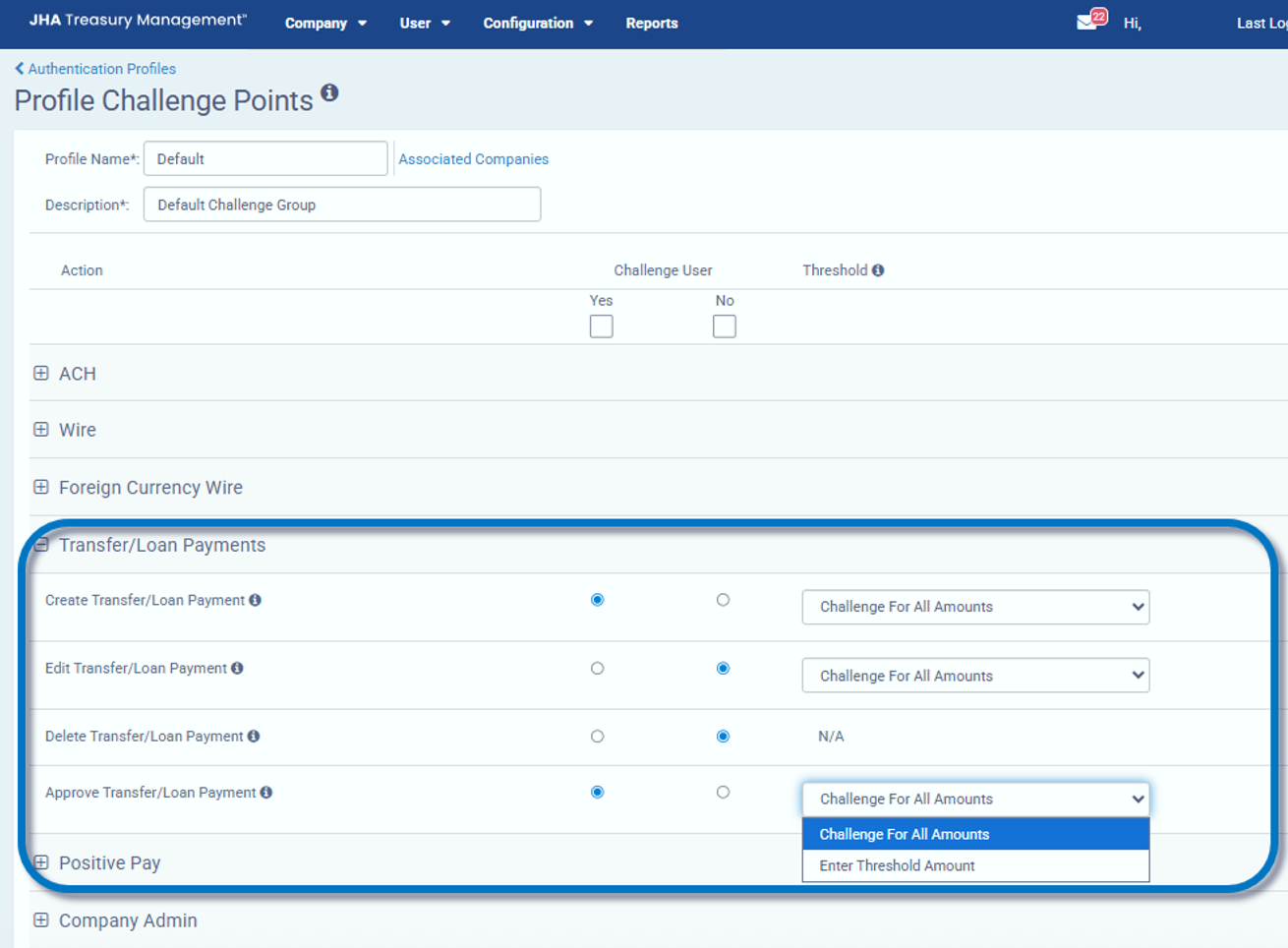 To safeguard high-value movements, the system utilizes a Challenge/Response authentication framework. Financial institutions define ‘profiles’ for challenge points and then assign those challenge profiles to companies.