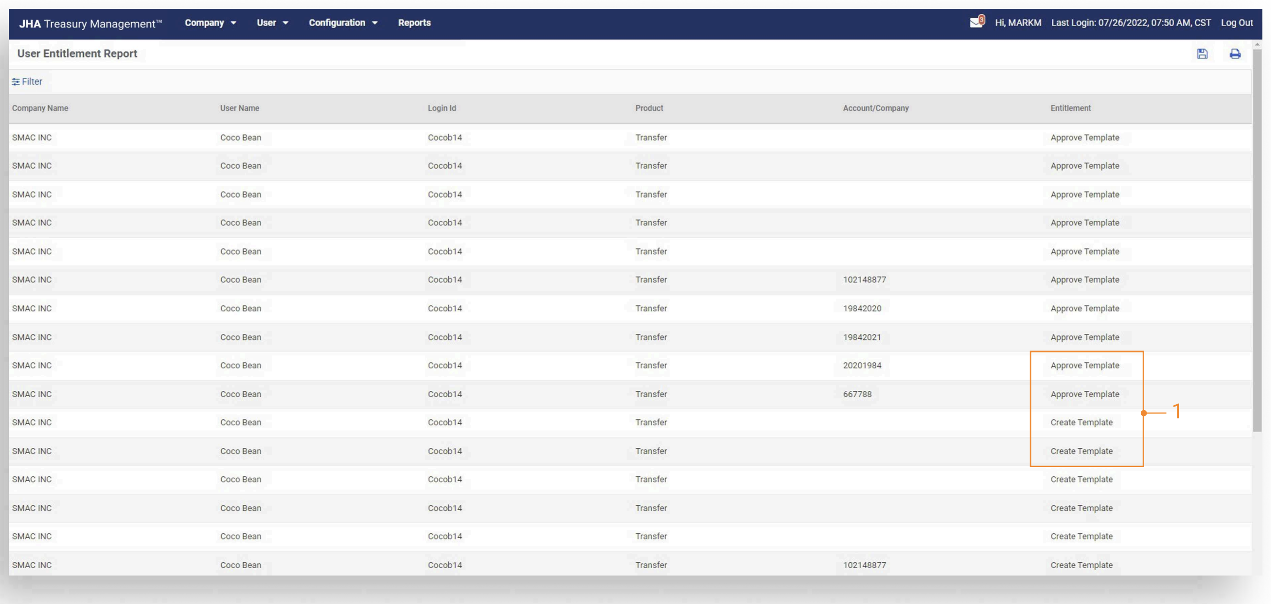 - User Entitlement Report