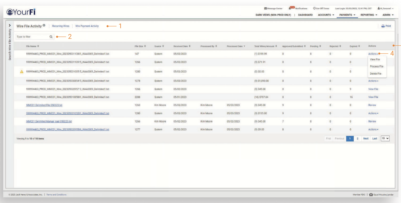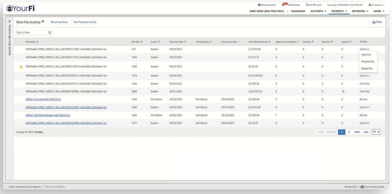- Wire File Activity reporting to easily track wire file activity.