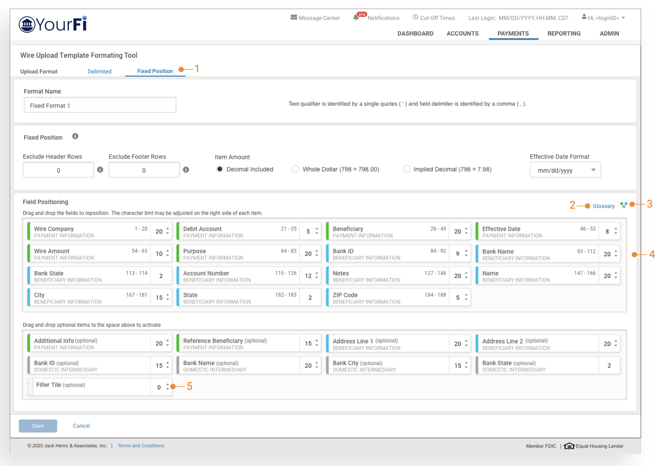 In addition to the optional fields, the Filler Tile can be used a placeholder to account for items in the file that will not be included in the payment details.