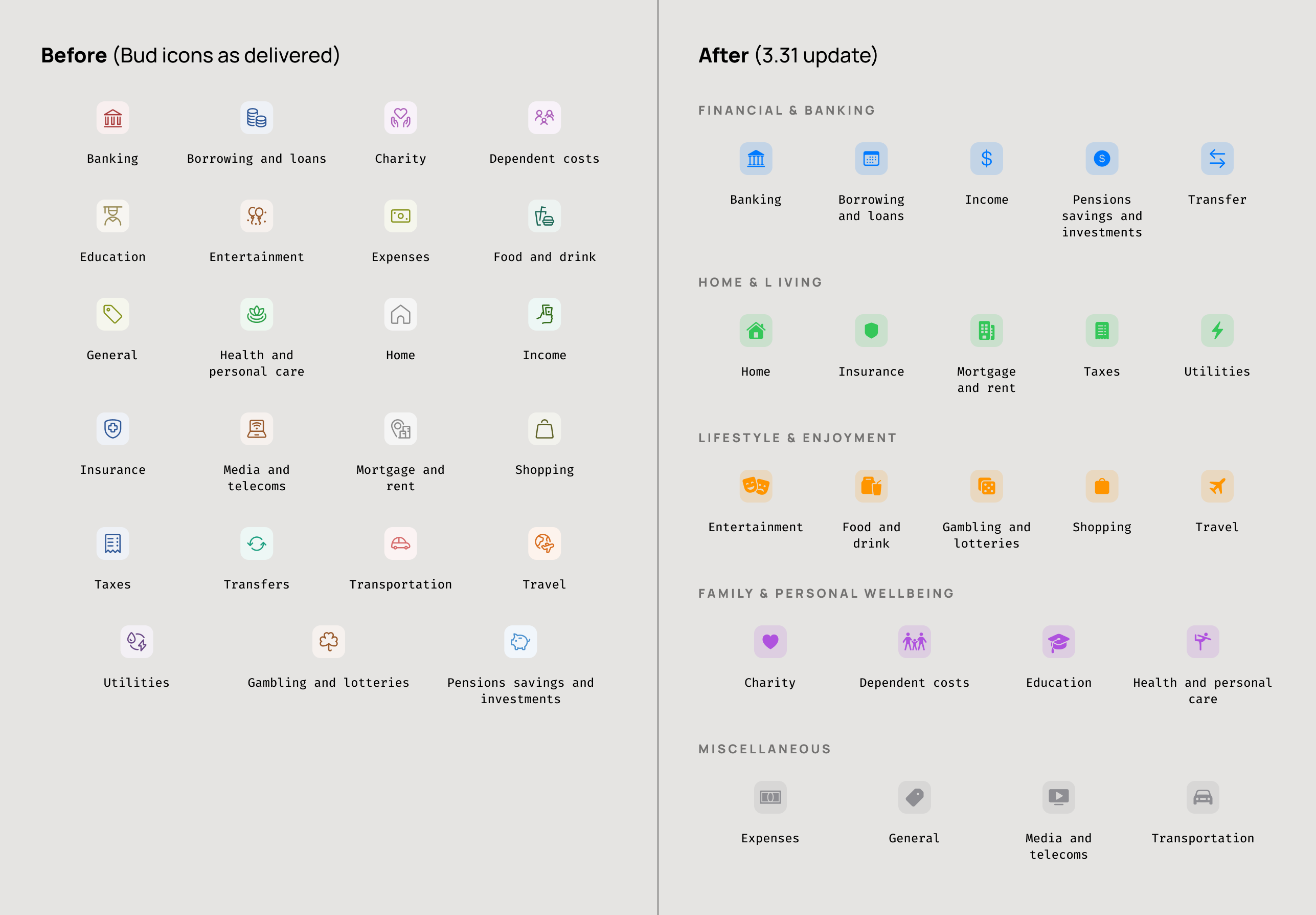 - No changes to Bud’s underlying data or category logic; this enhancement affects UI presentation only