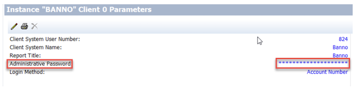 - After clicking Client Parameter, the masked Administrative Password displays.