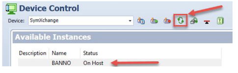 - Select the Banno SymXchange instance and refresh the instance by clicking the refresh button for the updated Administrative Password to be recognized.