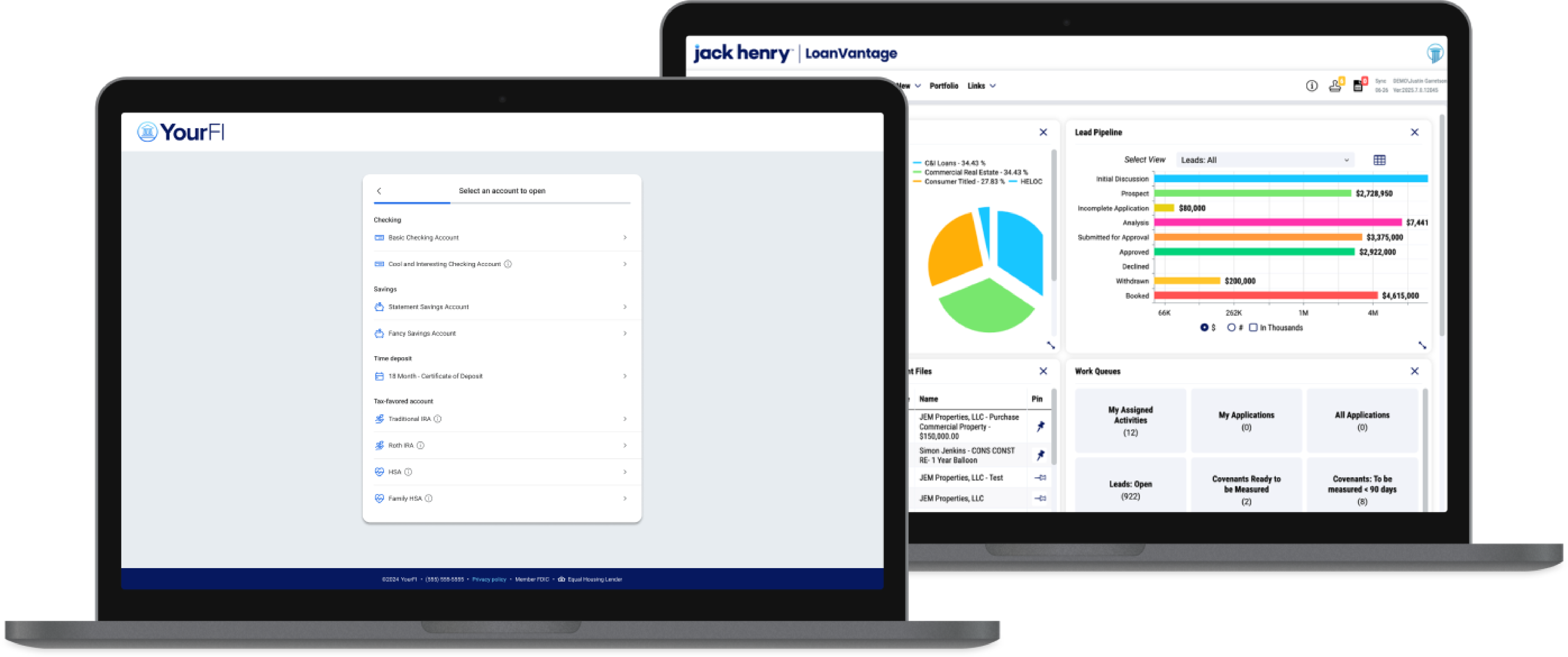 We know that in today’s world, banks and credit unions use any number of tools and systems to originate new deposits and loans. With Jack Henry™ Origination, we envision a future where a single solution lets you originate deposits and loans for consumers and businesses - online, in the branch, and over the phone. But we’re not there yet.