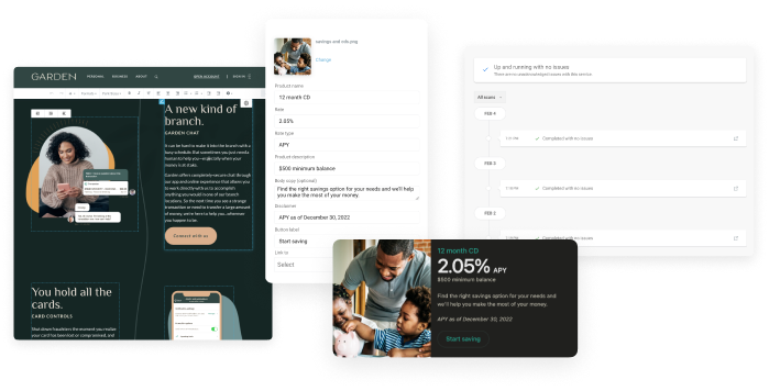 Anyone who has helped manage a website knows it’s a monster of a job. With this in mind, we’ve built a suite of tools designed specifically to make keeping your web presence up to date a breeze. Everything from creating and editing content in Banno Content™, to building and deploying effective marketing campaigns in Banno Marketing™, and even managing website governance and security with Banno Monitor™ is available in one convenient back office environment.