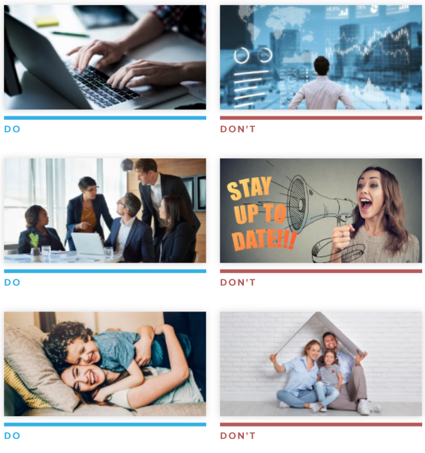 Imagery – whether illustration or photography – is your first visual impression on your user. Not only does it set the tone of voice for your institution, it reaches the user on a personal level. It’s a subtle language between you and your users that can be used for calls to action or brand support.